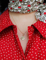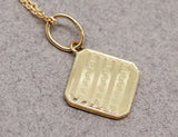 Pendentif réalisé à partir de boutons de manchette des années 1930 en or jaune 750/1000e, gravés à la main d'un motif de rayures droites et de vagues. Deux pendentifs disponibles.