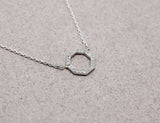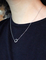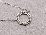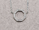 Plateau de bague ancien en platine monté en pendentif sur une chaîne d'or blanc 750/1000e. En forme d'octogone et pavé de diamants taille rose, il entourait autrefois une pierre au centre d'une bague. Fin travail de mises à jour sous les diamants, leur donnant plus d'éclat.