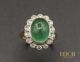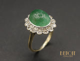 Bague Pompadour Emeraude Cabochon et Diamants
