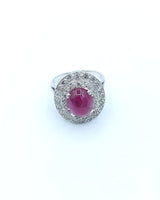 Bague Cocktail Ovale Rubis Cabochon et Diamant