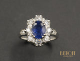 - Pierres : Saphir ~1,50 ct / Entourage diamants ~0,80 ct