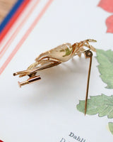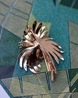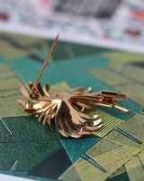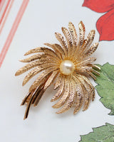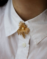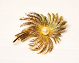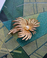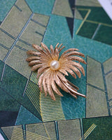 Broche en or jaune750/1000e représentant une branche de palmier, sertie au centre d'une perle de culture. Système broche épingle. Bel accessoire à détourner en très bon état.