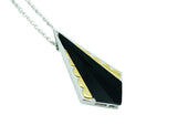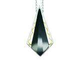 Sautoir en argent, inspirées de l'Art Déco, orné en son centre d'un onyx taillé. Détail du motif doré à l'or fin. Monté sur une chaîne d'argent forçat ronde.