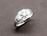 Bague Art Déco en or blanc 750 ornée en son centre d'un diamant moderne de 0,10 carat. Plateau composé de formes géométriques et de trompe l'oeil. Corps de bague simple.