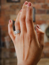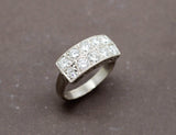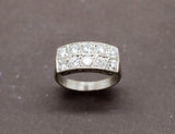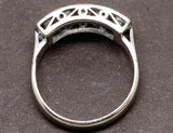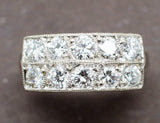 Bague Art Déco en platine, dont la tête est composée d'un plateau rectangulaire pavé de diamants sertis en "épi". Travail de millegrain, corps de bague simple et demi-rond.