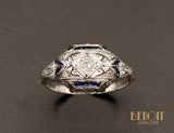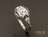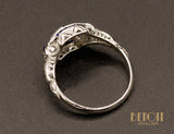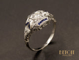 Bague Art Déco Platine Diamants et Saphirs
