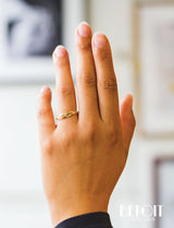 Ancien maillon de chaîne des années 1900en or jaune 750/1000e et or blanc 750/1000e, ouvragé de millegrain, transformé en bague par nos soins. Anneau simple neuf en or jaune 750/1000e.