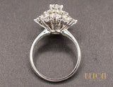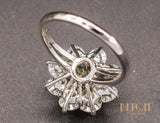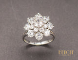 Bague marguerite double entourage en or blanc 750/1000e ornée au centre d'un diamant taille ancienne d'environ 0,50 carat serti sur six griffes, accompagné d'un premier entourage de 8 diamants puis d'un second de 8 diamants également, le tout serti sur griffes. Diamants estimés G-VS. Panier en fils. Anneau simple, se divisant en deux branches de chaque côté de la tête de bague.