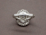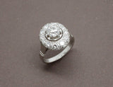 Belle pompadour ancienne datant des années 1930 en platine sertie d'un diamant central taille ancienne estimé à 0,90 carat. Entourage de 12 diamants d'un poids d'environ 0,05 carat chaque.