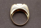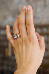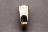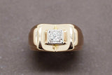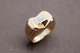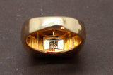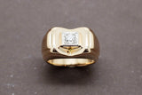 Bague Tank en or jaune 750/1000e, composée de différents volumes géométriques en or, et ornée en son centre d'un diamant taille ancienne d'environ 0,20 carat serti sur réhaut de platine.