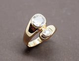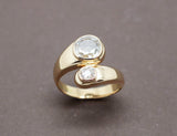 Bague jonc en or jaune 750/1000e, style Toi et Moi, ornée d'un diamant taille ancienne d'environ 0,50 carat, ainsi que d'un second d'environ 0,20 carat, les deux étant sertis en clos. Bijou récent d'occasion dont les pierres datent environ des années 1900.