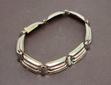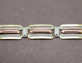 Bracelet de style et d'époque Art Déco, composé de maillons aux divers volumes d'or jaune, rose et blanc 750/1000e articulés.