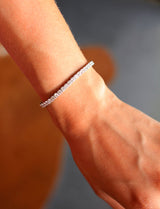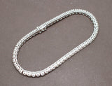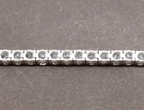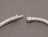 Bracelet ligne de diamants (ou tennis ou rivière de diamants) d'occasion, en or blanc 750/1000e, orné de 57 diamants sertis sur chatons 4 griffes articulés. Bijou en excellent état.