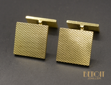 Paire de boutons de manchettes en or jaune 750/e, de forme carrée au motif texturé. Systèmes à bascule.