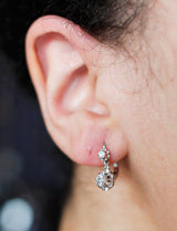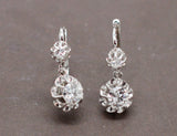 Boucles d'oreilles dormeuses anciennes en or blanc 750/1000e et platine, ornées chacune d'un diamant taille ancienne d'environ 0,30 carat surmonté d'un diamant de 0,05 carat, les deux sertis sur chatons gaufrés.