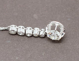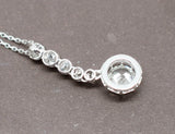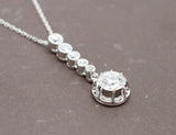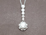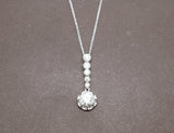 Pendentif ancien des années 1930 en platine, orné d'un diamant principal taille ancienne d'environ 0,90 carat serti sur chaton gaufré, surmonté d'une ligne de petits diamants taille ancienne de dimensions croissantes en serti clos ouvragé de millegrain, entièrement articulée. Pendentif monté sur chaîne neuve en or blanc 750/1000e.