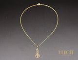 Pendentif en or jaune 750/1000e de style et d'époque Art Nouveau, orné d'une rangée de petites perles fines grises, fait d'un élément de boucle d'oreille transformé en pendentif par nos soins, avec une bélière en or jaune 750/1000e. Chaîne neuve en or jaune 750/1000e.