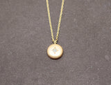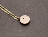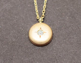 Pendentif composé d'un disque d'or jaune 750/1000e sablé (mat) orné d'un petit diamant taille ancienne d'environ 0,03 carat en serti étoilé. Elément principal datant du XIXe siècle sur chaîne forçat neuve en or 750/1000e. Parure avec la ref A6890, si achetés ensemble prix total 800€ au lieu de 880€.