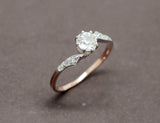 Bague ancienne en or rose 750/1000e, orné en son centre d'un diamant taille ancienne d'environ 0,45 carat serti sur 8 griffes de platine. De part et d'autre de la pierre centrale, l'anneau de la bague est réhaussé de platine et serti de petits diamants pour un poids total d'environ 0,05 carat. Bijou très fin et délicat.