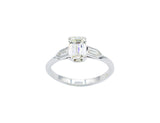 Bague Solitaire Création Benoit en or blanc 750/1000e, ornée en son centre d'un diamant taille émeraude de 1,02 carat K-VS2 serti entre quatre griffes et épaulé de chaque côté d'un diamant taille "bullet" serti en clos. Corps biseauté.